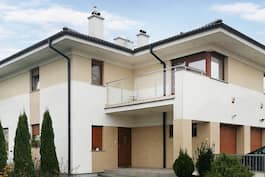 Проєкт елегантного будинку для зблокованої забудови, в якому планування дозволило спроєктувати перший поверх як житлову зону з єдиним простором. Сучасність корпусу будинку підкреслюють скляні елементи балюстрад, а також колір та тип облицювання фасаду. Вітальня, що займає всю ширину будівлі, була відкрита для кухні та холу, ставши центром сімейного життя. Привабливим елементом є освітлення інтер'єру через сучасне кутове вікно, завдяки якому ця зона виглядає привабливо, а камін на бічній стіні додає затишку. Програму доповнюють комора, туалет та гараж, доступні з тамбуру. Мансардний простір облаштований з урахуванням комфортного відпочинку мешканців будинку. Комфортабельні, три світлі кімнати та простора ванна кімната забезпечують повне розслаблення після стомлюючого дня. Цей проєкт відноситься до категорій: проєкти будинків для зблокованої забудови, проєкти двоповерхових будинків та проєкти сучасних будинків.