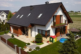 Простий, економічний проєкт будинку, призначений для реалізації на ділянках з в'їздом з півдня. Перевагою проєкту є зручна простора житлова зона із їдальнею з прямим виходом на криту терасу. Ця зона завдяки великому склінню відкрита для зовнішнього огляду. Велика, облаштована кухня підвищує комфорт використання. Додаткова кімната, розташована з фронтального боку, може успішно служити як кабінет. Функціональну програму першого поверху доповнюють ванна кімната, комора та велика котельня. У мансарді ми спроєктували чотири великі спальні, гардеробну та функціонально сплановану ванну кімнату. Стримано підібрані кольори фасадів та фактура штукатурки та облицювання підкреслюють простоту та сучасний вигляд будівлі. Проєкти будинків з простим корпусом і багатою функціональною програмою мають великий попит.
