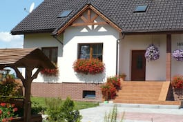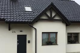 Економічний проєкт будинку з простим корпусом та функціональним інтер'єром. На першому поверсі розташована простора житлова зона – вітальня з каміном та виходом на терасу та відкрита кухня з еркером. Програма доповнена кабінетом, ванною кімнатою та котельнею, доступними з тамбуру. Мансарда - це приватна зона мешканців, де знаходяться три світлі спальні, ванна кімната та вбиральня. Завдяки скатному даху, мансардні приміщення добре організовані та чудово освітлені.