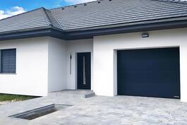 Проєкт привабливого одноповерхового будинку із гаражем на одну машину. Сучасний характер будівлі підкреслюють великі скління, які чудово висвітлюють інтер'єр будинку та органічно поєднують його з навколишнім садом. Приглушені тони добре поєднуються з натуральним облицюванням. Його доповнює плоска черепиця антрацитового кольору, якою покритий шатровий дах. Функціональне планування інтер'єру чітко розділяє різноманітні корисні зони. Житлова зона є відкритим простором вітальні, їдальні та кухні. Великі вікна у вітальні та їдальні відкривають вид на сад та підвищують привабливість інтер'єру. Розслабитись перед домашнім кінотеатром допоможуть зручні дивани. Камін розташований по осі обіднього столу. На критій частині тераси влаштована літня їдальня. Цікавим рішенням є дерев'яна пергола із фіксованим рухомим навісом, який можна розкладати залежно від потреб членів сім'ї. Кухня чудово представлена з розташованим у центрі великим островом. Його функціональна програма доповнена коморою. Їдальня, спроєктована поруч із кухнею, надає багато місця для шаф. У комфортну спальну зону можна потрапити з окремого коридору. Він складається з трьох світлих і добре розташованих спалень, двох ванних кімнат та пральні. Є також кабінет із виходом на криту терасу, яка закривається скляними дверима. У передпокої передбачено місце для містких шаф. З тамбуру можна потрапити до вбиральні, а також у господарські приміщення, що включають просторий гараж на одну машину та котельню.