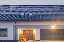 Зручний будинок з житловою мансардою та гаражем на дві машини із сучасним, простим корпусом із двосхилим дахом. Цей проєкт рекомендується для реалізації на ділянках із в'їздом з півдня. Композиція зі світлої штукатурки, дерев'яного облицювання та елементів з бетонною структурою підкреслює характер будівлі та забезпечує вражаючий зовнішній вигляд. Тераса має цікавий вигляд, а пергола, встановлена над нею, цікаво затіняє місце для літнього відпочинку. На терасі можна організувати обідню зону на відкритому повітрі, а також вітальню з садовим диваном. Відкрите планування житлової зони забезпечує мешканцям вільне сполучення між вітальнею, їдальнею та кухнею, а правильно розташоване скління забезпечує відмінне внутрішнє освітлення. Камін розташований у центрі будинку, щоб ефективно допомогти в обігріві будинку та створити затишну атмосферу. Велика кухня пропонує простору господарську програму з барною стійкою та високими шафами, а прилегла комора – додаткове місце для зберігання. Зручно, що комора з'єднана з підсобним приміщенням будинку, тому ми можемо ефективно та зручно переміщувати продукти з гаража. У мансарді є комфортабельні апартаменти для батьків та три дитячі кімнати, в одній з яких є своя гардеробна. У великій ванній кімнаті є ванна кімната з душем і набором раковин-стільниці. По осі ванної кімнати знаходиться підсобне приміщення, де можна організувати прання білизни. Будинок в айдаредах 11 (Г2) відноситься до категорії: проєкти будинків з житловою мансардою, проєкти сучасних будинків, проєкти будинків з гаражем на дві машини.