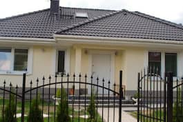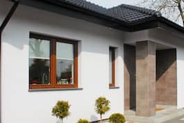 Проєкт одноповерхового будинку з функціональним плануванням приміщень та цікавою зовнішньою архітектурою. Вхідна аркада, що підтримується витонченою колоною, наголошує на його затишному характері. Окремий туалет розташований поруч із входом, а вхід у котельню спроєктований із тамбуру. Інтер'єр чітко поділено на дві зони. Житлова зона складається з вітальні з каміном і виходом на терасу, їдальні в еркері та відкритої кухні. Ця зона інтегрована із садом через велике скління. Окрема нічна зона складається з двох дитячих кімнат, спальні батьків із власним гардеробом та ванної кімнати, доступної з внутрішнього холу. Проєкти одноповерхових будинків популярні серед інвесторів, котрі цінують кімнати на одному рівні.