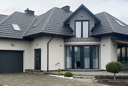 Вражаючий проєкт будинку, спланованого у вигляді невеликої резиденції. Витягнутий корпус будинку був покритий багатосхилим дахом, а на його привабливість суттєво впливає цікаве, напівкругле скління. Класичний стиль облицювання підкреслюється клінкерним фундаментом та стрічками навколо дерев'яних столярних виробів. Розташування вітальні та тераси робить цей проєкт ідеальним для ділянок з виходом з півдня. Численні скління природно висвітлюють інтер'єр і плавно з'єднують його з садом, що оточує будинок. Центром сімейного життя є представницька та простора житлова зона. У просторій вітальні є місце для відпочинку перед телевізором і дивани, що дозволяють розслабитися з чашкою кави в сяйві каміна. У круглому заскленому еркері знаходиться їдальня з великим сімейним столом, де під час трапези мешканці можуть насолоджуватися чудовим видом на зелений сад. Відкрита кухня може бути оснащена високими вбудованими шафами, що дуже ефектно виглядають у сучасних інтер'єрах. Додаткова кімната може бути кабінетом або гостьовою спальнею, завдяки розташованій поруч ванній кімнаті з душем. Підсобне приміщення складається з пральні, гаража, котельні. У мансарді будинку була спроєктована зручна нічна зона. Підсобне приміщення складається з пральні, гаража з одним паркувальним місцем та котельнею. У мансарді будинку була спроєктована зручна нічна зона. У будинку чотири спальні з балконами та ванна кімната з кутовою ванною. Цей унікальний проєкт будинку відноситься до категорії: проєкти будинків із входом з півдня, з житловою мансардою та додатковим кабінетом на першому поверсі.