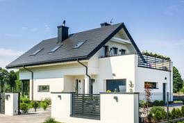 Комфортабельний будинок у сучасному стилі, підкреслений вхідною аркою. Велика крита тераса є привабливим продовженням денної зони будинку, а в теплі дні перетворюється на літню їдальню. Житлова зона включає простору вітальню з місцем для відпочинку перед телевізором або каміном, а також їдальню. Велике скління у вітальні привертає увагу. Кухня з'єднана із їдальнею через барну стійку, а її функціональне планування доповнює практична комора. Підсобна частина включає гараж і котельню для твердого палива. Подвійні сходи ведуть на мансарду, де розташовані три великі та світлі спальні, пральня з виходом на терасу та ванна кімната. У кімнаті батьків є окрема вбиральня.