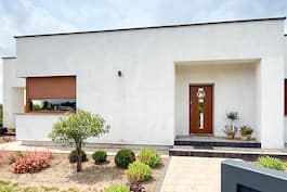 Це ще один проєкт у сімействі "Будинки в пепероміях", цього разу у варіанті з гаражем на дві машини. Простий, сучасний корпус будівлі вкритий плоским дахом, фасади виконані штукатуркою двох кольорів, що створює цікавий контраст. Привертає увагу панорамне скління, яке привабливо відкриває вітальню до зовнішнього вигляду і забезпечує відмінне освітлення житлової зони. Крита тераса збільшує простір для відпочинку в будинку, даючи можливість відпочивати на свіжому повітрі в будь-яку погоду, що ідеально підходить як літня їдальня. Вітальня зі зручним диваном та кріслами перед домашнім кінотеатром та каміном – комфортне місце для сімейного відпочинку, плавно з'єднане зі їдальнею. Підходящий простір для зберігання забезпечується високою вбудованою шафою та коморою, що примикає до кухні. З передпокою можна потрапити до зручного кабінету з виходом на терасу. У другій частині будинку була спроєктована нічна зона, яка включає дві дитячі кімнати, спальню батьків із гардеробом та дві ванні кімнати. Дизайн будинку передбачає безліч місць для шаф, що, безперечно, допоможе у підтримці порядку. "Будинок у пепероміях (Г2)" відноситься до категорій, що цінуються Інвесторами: проєкти одноповерхових будинків, проєкти сучасних будинків, він також поповнює колекції: проєкти будинків з плоским дахом.