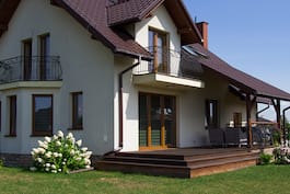 Класичний проєкт будинку, що вільно відсилає до традиції польських садиб. На фасаді будівлі є балкон, що підтримується колонами, що захищає розташований у центрі головний вхід від вітру та дощу. Клінкерний фундамент та смуги навколо дерев'яних столярних виробів підкреслюють класичний стиль оздоблення, а численні скління гарно висвітлюють інтер'єр будинку. Розширені карнизи з боку саду створюють практичний навіс над частиною тераси, де мешканці можуть насолоджуватися відпочинком на свіжому повітрі за будь-якої погоди. Світла та простора вітальня є центром сімейного життя для мешканців та їхніх гостей. У представницькій вітальні зручно розмістилися кутовий диван перед каміном та домашнім кінотеатром, запрошуючи вас відпочити разом. Розмір вітальні дозволяє вільно облаштувати її відповідно до індивідуальних потреб сім'ї. Відкрита кухня освітлена двома вікнами, її перевага – оптимальна кількість робочих поверхонь. Кухонну програму доповнює розташована поряд із нею комора. Додаткову кімнату можна використовувати як кабінет або гостьову спальню, завдяки запланованій поруч ванній кімнаті з душем. З холу ми потрапляємо до господарської частини будинку, що складається з комори під сходами, котельні для твердого палива з власним зовнішнім виходом та гаража з одним паркувальним місцем. Комфортна нічна зона була спроєктована в мансарді, де ви знайдете чотири світлі та просторі спальні та ванну кімнату з кутовою ванною та душем. Всі кімнати добре освітлені завдяки використанню високих балконних дверей або мансардних вікон, в них також є місце для містких шаф, письмових столів і книжкових шаф. Загальний гардероб та пральня також розташовані над гаражем. Цей привабливий проєкт будинку відноситься до категорії: проєкти невеликих будинків, проєкти будинків з житловою мансардою та додатковим кабінетом на першому поверсі.