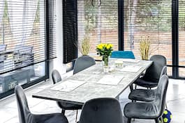 Ще один цікавий проєкт із сімейства "Будинків в сливах", які високо цінуються інвесторами. Це простора будівля з житловою мансардою, що відрізняється дуже представницьким зовнішнім виглядом. Сучасний характер "Будинку в сливах 4 (Г2)" підкреслюється великим, вражаючим склінням і натуральним облицюванням, яке гарно поєднується зі світлою штукатуркою. Відпочити на свіжому повітрі пропонує кутова тераса, завдяки якій мешканці можуть влаштувати там затишну літню їдальню. Простора житлова зона виглядає виключно привабливо, численні скління забезпечують велику кількість природного світла та підкреслюють сучасний характер інтер'єру. У вітальні та їдальні є широкі розсувні двері на терасу, які чудово відкривають будинок для зовнішнього вигляду та саду. Ефектно засклена їдальня вміщує великий стіл, її розмір дає можливість організувати вечірку у великій компанії. Простір кухні візуально відокремлений від житлової зони за рахунок розташування на її межі півострова, на якому з боку їдальні передбачено місце для шаф для зберігання посуду. Комфортна робота на кухні гарантується оптимальним розташуванням функцій та просторими робочими поверхнями. Під сходами організовано додатковий простір для зберігання, де спроєктовано практичне підсобне приміщення. У другій частині першого поверху у розпорядженні мешканців додаткова кімната з видом на сад, яка може бути використана як кабінет, але також чудово підійде як гостьова спальня. Поруч із ним знаходиться світла ванна кімната з душем. З житлової зони жителі мають швидкий прохід у гараж та доступну з нього котельню на твердому паливі. Вхід у гараж розташований поряд зі сходами, що ведуть з мансарду, а додаткові двері, передбачені в конструкції будинку, захищають від проникнення неприємних запахів. Варто зазначити, що в просторому гаражі, крім зручного паркування двох автомобілів, можна зберігати спортивний інвентар, садові інструменти. Мансарда є затишним нічним простором, де розташовані три великі спальні, дві з яких мають власні вбиральні, кімната батьків також має власний балкон. Повністю обладнана ванна кімната розташована на осі сходів, поруч знаходиться практична пральня. З передпокою можна потрапити на просторе, природно освітлене горище, яке заповнює простір над гаражем. Цей унікальний проєкт відноситься до категорії: проєкти сучасних будинків, проєкти будинків із житловою мансардою, проєкти будинків із шатровим дахом.