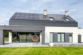 Привабливий проєкт будинку в сучасному стилі барнхаус, що відрізняється зручним функціональним плануванням. Фасад поєднує світлу і графітову штукатурку з дерев'яним облицюванням. Стиль підкреслюється панорамним склінням і безкарнізним дахом. Злегка виступаючий гараж дозволив оригінально екранувати головний вхід. Простора вітальня на першому поверсі - зручне місце для спільного відпочинку. Увагу привертає красиве двоповерхова скління в їдальні і вражаючий мезонін. У вітальні є місце для дивану перед каміном і домашнього кінотеатру, а в їдальні достатньо місця, щоб накрити великий сімейний стіл на 10 осіб. Серцем відкритої кухні є розташований по центру багатофункціональний острів, який також ідеально підходить для високих приміщень з вбудованою технікою. Широкі розсувні двері з'єднують вітальню з критою терасою, яка є літньою зоною відпочинку на свіжому повітрі. Поряд зі сходами в холі є місце для зелених рослин, які стануть прикрасою кожного інтер'єру. Програма першого поверху доповнена комфортабельною кімнатою з власною ванною кімнатою, вбиральнею та виходом на окрему терасу. З тамбура є вихід в гараж на дві машини і далі в котельню для газового котла, яка має зовнішній вихід і може також служити в якості комори для садового інвентарю. В мансарді будинку була спроєктована приватна нічна зона, де розташовані три світлі і облаштовані спальні, загальна ванна кімната з повною програмою і пральня. У кімнаті батьків є свій гардероб, а в холі у антресолей можна організувати куточок для занять. На терасі над гаражем планується додаткова зона відпочинку, доступна з двох кімнат. Представлений "Будинок в келлерісах (Г2)" відноситься до колекції: проєкти будинків з житловою мансардою, проєкти будинків в сучасному стилі, проєкти будинків з гаражем на дві машини і проєкти будинків в сучасному стилі барнхаус.