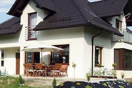 Компактний, економічний будинок у сучасному стилі. Площу на першому поверсі майже повністю віддано під житлову зону: багато місця відведено під зону відпочинку з кутовим каміном, виходом на терасу та стінкою для домашнього кінотеатру. Близьке розташування їдальні у скляній частині еркера та вид на відкриту кухню дозволяють залишатися в контакті з іншими домочадцями. Приваблива геометрія сходів веде на горище. У передній частині знаходяться спальні з двома односпальними ліжками та невелика кімната відпочинку. Вдале планування конструкції дозволило відокремити головну спальню та ізолювати її від інших кімнат. Крім гаража, котельні для твердого палива і комори для садового інвентарю на першому поверсі, господарська частина будинку також включає пральню і гардеробну на горищі. Завдяки використанню облицювання стін та оригінальних архітектурних деталей корпус будівлі набуває привабливого характеру.