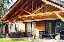 Проєкт "Будинок під помаранчею" - це результат гри, проведеної на Facebook: "Спроєктуйте з нами сучасний одноповерховий будинок". Учасники мали можливість взяти участь у роботі над проєктом та прийняти рішення щодо багатьох важливих елементів. На наступних етапах роботи над проєктом ми ставили такі питання, як форма корпусу будівлі, тип даху, спосіб оздоблення фасаду, тераса та функціональне планування будинку. Спроєктований "Будинок під апельсином" є будівлею з простим корпусом, для зовнішнього оздоблення якого була обрана світла штукатурка в поєднанні з натуральним облицюванням у відтінку теплого дерева. Скатний дах покритий плоскою черепицею антрацитового кольору, підібраною в тон дерев'яного оздоблення. Сучасний характер будинку підкреслюють великі скління та вражаюча пергола, що покриває терасу в садовій зоні. Житлова зона добре освітлена та включає простору вітальню, їдальню з місцем для великого сімейного столу та функціональну, світлу кухню з барною стійкою та зручною робочою поверхнею для приготування їжі. Мешканці неодмінно оцінять переваги використання будинку, де привабливо оформлена тераса природно збільшує зону відпочинку вітальнею і дає можливість організувати обідню зону на відкритому повітрі, а також розмістити комплект зручних садових меблів. Розсувне скління, що використовується в конструкції, дає можливість широко відкрити будинок для зовнішнього огляду, є цікавим рішенням облаштування, підвищує декоративну цінність інтер'єру і вносить ефектний дизайн. Нічна зона " Будинку під помаранчею " складається з трьох добре розташованих і добре освітлених спалень, де також можна встановити практичні шафи. Кімната батьків має широкий вихід на терасу. Функціональне планування будинку доповнюється світлою ванною кімнатою та туалетом. У підсобному приміщенні передбачено місце для газового котла, тут можна влаштувати пральню. Представлений проєкт відноситься до категорії: проєкти одноповерхових будинків, проєкти сучасних будинків.