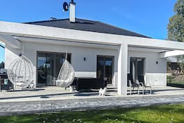 Сучасний одноповерховий будинок з простою формою та зручним функціональним плануванням. Білі оштукатурені фасади, оброблені дерев'яною обшивкою, надають йому елегантного характеру, а велика тераса з боку саду стає додатковою зоною відпочинку в літні дні. Житлова зона є просторою вітальнею із їдальнею. Тут є місце для зручного кутового дивана навпроти домашнього кінотеатру та каміна, а також для великого сімейного столу, встановленого біля панорамного еркера. Перевагою відкритої кухні є велика кількість робочих поверхонь та практична комора. Невеликий коридор веде до особистої зони мешканців. У чотири світлі спальні та ванну кімнату можна потрапити із зручного коридору. Одна з кімнат може успішно служити як кабінет. Функціональна вбиральня та котельня на твердому паливі доступні з тамбуру.