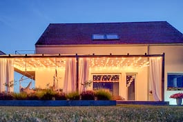Привабливий будинок з житловою мансардою та гаражем на дві машини, що розширює колекцію: сучасні проєкти будинків. Оригінальний мінімалістський екстер'єр підкреслюється дахом без карнизу. Фасади виконані світлою штукатуркою і натуральним облицюванням і підкреслюють, зокрема, вхідну арку. Особливо вражає кутова тераса, вкрита сучасною перголою, яка з'єднана з балконом на садовому фасаді. Тераса, спроєктована таким чином, що дає мешканцям можливість організувати кілька відпочинкових зон на відкритому повітрі, розмістивши як літню їдальню, так і зону відпочинку з набором садових крісел. У відкритій житловій зоні першого поверху знаходяться вітальня з широким виходом на терасу, двоповерхова їдальня та освітлена кутовим вікном, добре організована кухня. Правильно організовані функції забезпечують комфорт під час щоденного приготування їжі, кухонна програма доповнена практичним баром для сніданку та коморою, розташованою у холодній зоні будинку. Поруч із вітальнею є кімната, яку можна використовувати як кабінет, а завдяки розташованій поруч ванній кімнаті з душем, вона стане зручною гостьовою спальнею. Господарська частина будинку доступна через тамбур: комора, гараж на дві машини з окремим приміщенням, котельня з додатковим входом безпосередньо зовні. Нічна зона будинку включає дві дитячі спальні, простору кімнату батьків з вбиральні, яка, як і прилегла ванна кімната, має вихід на балкон. У другій частині мансарди знаходиться кімната відпочинку, "Будинки в Аморфах (Г2)", а також окрема вбиральня та пральня з функцією сушильної кімнати. Цей унікальний проєкт будинку відноситься до колекції: проєкти будинків з антресолями, проєкти будинків з кабінетом на першому поверсі та проєкти будинків з гаражем на дві машини.