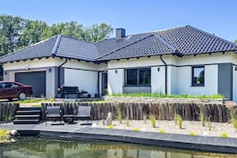 Сучасний проєкт одноповерхового будинку з привабливою вхідною зоною та затишною, частково критою терасою з боку саду. Житлова зона є вітальнею із їдальнею, широко відкритою в сад, із зручним кутовим диваном перед каміном, домашнім кінотеатром та практичними шафами в обідній зоні. Відкрита кухня передбачає можливість встановлення високих вбудованих меблів, а функціональний кухонний острів та комора підвищують комфорт її використання. У цій частині будинку спроєктовані кімнати для батьків – з власною вбиральнею та ванною кімнатою. З іншого боку знаходяться дві дитячі кімнати, ванна кімната та пральня. У господарській зоні розташовані великий гараж та котельня на твердому паливі. Перевагою цього проєкту є велика кількість місць для зберігання у вигляді вбудованих стінних шаф. Будинок в навлоціях (Г2) відноситься до популярних колекцій: проєкти одноповерхових будинків та проєкти сучасних будинків.