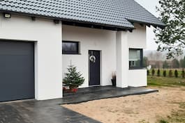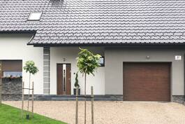 Проєкт будинку з житловою мансардою та одномісним гаражем, який трохи виступає перед головною лінією фасаду. Сучасний характер простого корпусу будинку підкреслюється поєднанням світлої штукатурки та кам'яного облицювання, з яким елегантно поєднується плоска антрацитова плитка. Розширені карнизи створюють навіс над входом, а кутове вікно є цікавою деталлю передньої частини будівлі. Численні скління забезпечують оптимальну кількість природного світла, а частково крита тераса – ідеальне місце для відпочинку на свіжому повітрі за будь-якої погоди. Через передпокій, де є місце для практичного гардеробу, ми проходимо у відчинену житлову зону. Кутовий диван перед телевізором забезпечить приємний відпочинок у вітальні, а обідня зона, ідеальна для споживання їжі у великій компанії, розташована біля вікна. Камін, який є додатковим джерелом опалення, створить відповідний настрій у зимові вечори. Він розташований у центрі житлової зони та оптично позначає межу кухні. Практичне функціональне планування забезпечує багато місця для зберігання та зручних стільниць. На першому поверсі є також ванна кімната та підсобне приміщення під сходами, з якого можна потрапити до гаража, і далі в котельню з прямим виходом на вулицю. Подвійні сходи ведуть до мансарди, приватної зони мешканців будинку. Велика спальня батьків має власний, місткий гардероб, а в дитячих кімнатах достатньо місця для комфортного відпочинку, навчання, а також практичні шафи. Сучасні портафенетри та похилі вікна забезпечують оптимальне освітлення всіх спалень. Навпроти сходів розташована ванна кімната, з якої можна потрапити до пральні. Цей проєкт належить до популярної серед інвесторів колекції: проєкти невеликих будинків.