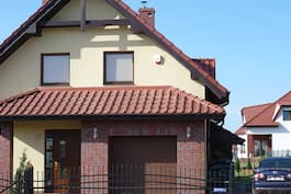 Простий будинок з гаражем, що ідеально підходить для забудови на вузьких ділянках. Стіна з вхідними дверима трохи відходить назад, що дозволило побудувати практичну арку. Гараж, розташований у корпусі будівлі, з'єднаний із житловою зоною через тамбур. Кухня розташована в привабливому еркері - її можна відкрити в їдальню та створити єдиний простір разом із вітальнею. Як альтернатива, відокремлена стіною, вона може функціонувати як незалежна, окрема кімната. У мансарді є чотири дуже сонячні спальні та велика ванна кімната з душовою кабіною та кутовою ванною. Балкон, доступний із двох спалень, посилює функцію мансарди, одночасно закриваючи вихід на терасу.