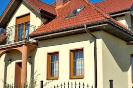 | Крыша | 4-скатная, Скат 42° , Стропильная система деревянная, кровля из керамической черепицы |