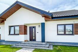 Экономичный проект одноэтажного дома с практичной аркой над входом и привлекательной кровлей террасы. Жилая зона состоит из просторной и хорошо освещенной гостиной с местом для отдыха перед домашним кинотеатром и камином, столовой и открытой кухни с большим количеством рабочих поверхностей. Его преимуществом является кладовая, также доступная из тамбура. Ночная зона состоит из трех светлых спален, гардеробной и общей ванной комнаты. Подсобное помещение включает в себя прачечную и котельную для твердого топлива с отдельным выходом. Это проект дома с простым корпусом, который в сочетании с натуральной облицовкой стен придает дому уникальный, элегантный и современный стиль.