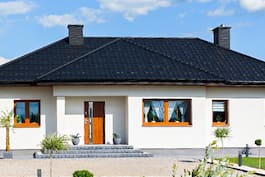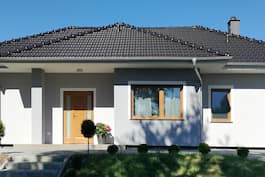 Суть этого современного одноэтажного дома – открытый вид в сад. Планировка здания, выполненная в форме буквы Г, позволила интересно расположить террасу и создать там привлекательный уголок. Благодаря боковому расположению гостиной, открытая дневная зона, охватывающая почти все крыло здания, будет дольше освещаться солнцем. В центре внимание привлекает декоративный камин, расположенный на внутренней стене. Впечатление простора усиливают широкие двери, ведущие на террасу и угловое остекление. Дом был разделен на дневную и, отделенную дополнительной дверью, спальную зону. На террасу можно попасть из комнат вдоль садовой стены. Бытовые помещения с твердотопливной котельной расположены в глубине коридора рядом с запасным выходом. Современный, комфортабельный дом с оптимальной архитектурной формой. Интеграция с садом, уточнение деталей окружающей среды оказали положительное влияние на внутреннее пространство, а решение функции дома на одном уровне значительно сократило затраты на реализацию и эксплуатацию. Вышеуказанный дом доказывает, что экономию дизайнерских решений можно успешно сочетать с визуальной привлекательностью здания.
