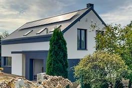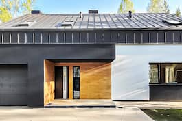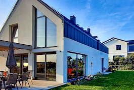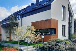 Это уникальный проект дома, который идеально вписывается в современный дизайн и выделяется функциональным дизайном интерьера. Простая форма здания покрыта бескарнизной крышей, отделанной металлическими фальцевыми листами антрацитового цвета. Правильно подобранные детали и натуральная облицовка придают зданию современный характер. Особенно привлекательна терраса со стороны сада. Пергола образует экран над террасой, обеспечивая приятную тень для жителей. Размер террасы позволяет организовать летнюю столовую и зону отдыха. Внутрь дома можно попасть через практически крытый главный вход и просторный вестибюль, в котором расположены гардероб, вешалка для длинных курток и зона отдыха. Впечатляет жилая зона с выходом на крышу над гостиной и столовой, что повышает декоративную ценность интерьера и усиливает впечатление простора. Отличное дневное освещение обеспечивается за счет большого остекления, включая оригинальное двухэтажное окно в столовой. В просторной кухне имеется интегрированный по центру остров, где можно организовать современную зону приготовления пищи, доступную с разных сторон. Остров также может служить в качестве барной стойки для завтрака. Кухня также может быть оборудована высоким встроенным модулем. На первом этаже находится удобный кабинет и ванная комната с душем, а холл украшает привлекательная лестница с двумя площадками. В гараж, предусмотренный проектом дома, можно попасть через тамбур, а в состав хозяйственных помещений входит газовая котельная. Комфортные условия для уединенного отдыха и учебы гарантируют жильцам три спальни, спроектированные в мансарде. В комнате родителей есть отдельный шкаф для одежды, гостиная зона рядом с кроватью, здесь можно организовать отдельную зону для просмотра телевизора. Во второй части мансарды расположены две уютные комнаты для детей, а функциональную планировку дополняют хорошо оборудованная ванная комната и прачечная. На антресоли предусмотрена дополнительная зона для занятий. "Дом в келлерисах" - это проект дома в стиле современного амбара, относящийся к коллекции: проекты домов с жилой мансардой, проекты домов со скатной крышей, проекты домов с одноместным гаражом.