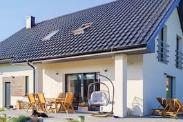 Комфортабельный дом с простым корпусом и гармоничными фасадами. В теплые дни крытая терраса может служить летней столовой на открытом воздухе, увеличивая жилую зону дома. В большой, просторной гостиной есть зона отдыха с удобным диваном перед домашним кинотеатром, обеденная зона и место для отдыха у камина. Остекление, освещающее гостиную, привлекает внимание. Светлая кухня соединена со столовой посредством кухонного полуострова, а ее функциональную планировку дополняет практичная кладовая, доступная также из прихожей. Подсобная часть включает в себя гараж и котельную на твердом топливе с отдельным выходом. Двойная лестница ведет на мансарду, где находятся три уютные и светлые спальни, кабинет и удобная ванная комната. В спальне родителей предусмотрено место для практичного гардероба.
