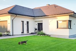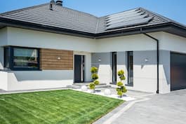 Современный проект одноэтажного дома с двойным гаражом, компактная, низкая констукция которого очень хорошо вписывается в окружающий ландшафт. Элегантный внешний вид дома обеспечивает интересное сочетание натуральных фасадных материалов. Гараж, расположенный перед главной линией, создает отделённую зону входа. Фронт здания украшен с помощью углового окна которое прекрасно освещает кухню. Из вестибюля попадаем в открытую гостинную, которая является идеальным местом для отдыха всей семьи. Широкое остекление в гостиной создает эффект взаимного проникновения внутреннего пространства с садом. На частично крытой террасе можно организовать кофейный уголок и поставить набор садовой мебели. В столовой есть большой стол для всей семьи и она плавно соединяется с кухней, в которой программа включает в себя барную стойку и высокие пеналы. С отдельного коридора доступна комфортная ночная зона жителей. В комнате есть большая родительская спальня с собственной шкафом для одежды, две комнаты для детей, ванная комната с угловой ванной, душем и двумя умывальниками. Программа комплектуется прачечной и туалетом. Хозяйстыенная зона в представленном дома - это гараж, кладовая, которая дополняет функциональную программу кухни, а также котельная с котлом на твердом топливе с отдельным входом извне. Проект предусматривает возможность размещения лестницы и позже адаптацию мансарды в подсобное помещение. Дизайн дома относится к категории проекты одноэтажных домов и проекты современных зданий.
