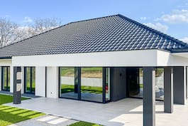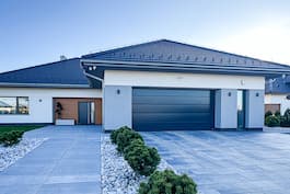 Популярная среди инвесторов коллекция: проекты одноэтажных домов теперь пополнилась интересным проектом "Дом в подснежниках 3 (Г2)". Это предложение наверняка понравится людям, которые ценят современные тенденции и стремятся к комфортным, просторным интерьерам. Эффектно выполненные фасады приобрели естественный шарм благодаря использованию деревянных и бетонных облицовок. Привлекательно обустроенная терраса с аркадой и современной перголой - это комфортное место для отдыха на свежем воздухе. Здесь можно организовать летнюю обеденную зону, а семейные трапезы можно проводить в зелени сада. Жилая площадь дома великолепно оформлена, а многочисленные остекления привносят в интерьеры много естественного света. В гостиной предусмотрено место для большого углового дивана перед домашним кинотеатром. Просторная столовая, расположенная в застекленной части первого этажа, выглядит исключительно привлекательно. Во время больших семейных торжеств стол можно еще больше раздвинуть. Еще одним достоинством проекта является большая кухня с многофункциональным островом. Удобство работы и хранения гарантируют широкие кухонные столешницы, высокие встроенные шкафы и кладовая. Туалет, расположенный рядом с тамбуром, завершает программу жилой зоны. Ночная зона дома была очень четко отделена и дополнительно ограждена раздвижной дверью. Главная спальня спроектирована с отдельной ванной комнатой и гардеробной, что обеспечивает максимальный комфорт для родителей. Смежная комната может быть использована в качестве офиса, где есть место для удобного письменного стола и шкафов или книжных шкафов для документов. Две детские спальни расположены в глубине дома и имеют выход на террасу, а широкие балконные двери обеспечивают много естественного света. Функциональную программу дома дополняют удобная ванная комната и прачечная с функцией сушки. Из тамбура можно попасть в котельную и далее в гараж на две машины, где есть место для спортивного инвентаря. Представленный проект "Дом в подснежниках 3 (Г2)" относится к категории: проекты современных домов, проекты домов с гаражом на две машины.