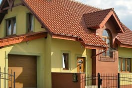 | Крыша | 2-скатная, Скат 42° , 20° , Стропильная система деревянная, кровля из керамической черепицы |