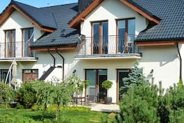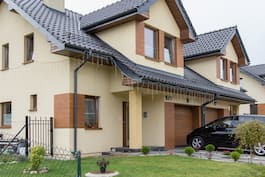 Отличающийся современными линиями, односемейный дом с гаражом, предназначенный для сблокированной застройки. Функциональная программа была решена на двух этажах - первом и мансарде. Из тамбура, с входом в гараж, мы попадаем в дневную зону первого этажа. Она образована гостиной с камином, расположенной сбоку, плавно соединяющейся со столовой и кухней. Особенно впечатляет застекленный двойной выход на террасу, оптически увеличивающий пространство. Рядом с входом находится ванная комната. Лестница, видимая из гостиной, ведет в мансарду, где расположены четыре комфортабельные комнаты - две из них с балконами - и ванная комната с душем и угловой ванной. Чрезвычайно функциональный дом сочетает в себе современный дизайн и рациональное использование пространства.