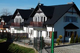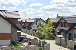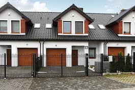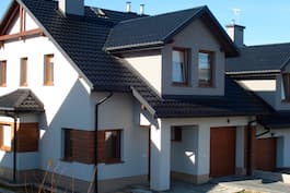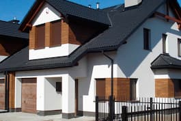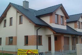 Отличается современной линией дизайна односемейного дома с гаражом для для сблокированной застройки. Полезная программа была решена здесь на двух этажах - первом и жилой мансарде. Из тамбура с входом в гараж мы попадаем в жилую зону первого этажа. Она состоит из гостиной с угловым камином, плавно соединяющейся с обеденной зоной и кухней. Большой эркер на кухне выглядит эффектно, увеличивая ее пространство. Рядом с входом находится ванная комната. Лестница, видимая из гостиной, ведет в мансарду, где расположены четыре комфортабельные комнаты - две из них с балконами - и ванная комната с душем и угловой ванной. Чрезвычайно функциональный дом сочетает в себе элегантность современности и экономное использование пространства. Проекты домов для сблокированной застройки часто выбирают застройщики и клиенты с узкими участками.