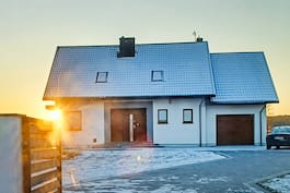 Проект дома в современном стиле, с привлекательным входом который акцентирован деревянной облицовкой и штукатуркой. Прихожая с внушительной дверью с боковой фрамугой служит гардеробной благодаря большим встроенным шкафам. В гостиной есть место для комфортного отдыха перед камином и домашний кинотеатр, а большое остекление открывает вид на сад. Открытая кухня, привлекательно освещенная угловым окном, плавно соединяется со столовой, из которой есть прямой проход на крытую часть террасы, идеально подходящую для летних обедов или кофейного уголка. Дополнительная комната идеально подходит в качестве кабинета. В холодной части дома размещена большая кладовая с местом для морозильной камеры, а через нее - широкий гараж с местом для хранения и котельная на твердом топливе с отдельным выходом. Удобная лестница ведет в ночную зону в мансарде. Здесь спроектированы три светлые спальни, гардеробная, удобная ванная комната и прачечная. Над гаражом находится чердак, предназначенный для индивидуальной адаптации. Поскольку здесь предусмотрена вентиляция, ее можно свободно адаптировать к необходимым функциям. Представленный проект относится к популярным категориям: проекты современных домов и домов с жилой мансардой.