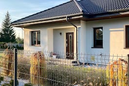 Современный одноэтажный дом с простой формой и удобной функциональной планировкой. Белые оштукатуренные фасады, отделанные деревянной обшивкой, придают ему элегантный характер, а большая терраса со стороны сада становится дополнительной зоной отдыха в летние дни. Жилая зона представляет собой просторную гостиную со столовой. Здесь есть место для удобного углового дивана напротив домашнего кинотеатра и камина, а также для большого семейного стола, установленного у панорамного эркера. Преимуществом открытой кухни является большое количество рабочих поверхностей и практичная кладовая. Небольшой коридор ведет в личную зону жильцов. В четыре светлые спальни и ванную комнату можно попасть из удобного коридора. Одна из комнат может успешно служить в качестве кабинета. Функциональная гардеробная и котельная на твердом топливе доступны из тамбура.