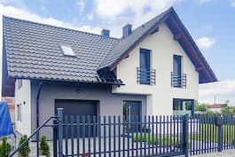Это проект современного дома с мансардой с оптимально организованной планировкой и интересной внешней отделкой. Тщательная композиция фасада, разнообразная штукатурка с деревянной облицовкой, большие остекления и современные детали обеспечивают привлекательный внешний вид дома и подчеркивают его характер. Зона входа покрыта практичной аркадой и подчеркнута другим цветом штукатурки. Вдоль боковых и садовых фасадов была спроектирована привлекательная угловая терраса, частично скрытая деревянной перголой. Это идеальное место для семейного отдыха за чашкой кофе в лучах летнего солнца. Терраса плавно соединена с дневной зоной дома, в гостиной и столовой предусмотрено широкое раздвижное остекление. Столовая расположена в центре дневной зоны и примыкает к гостиной и кухне. Большое угловое окно прекрасно освещает кухонное пространство с удобной рабочей поверхностью, высокими шкафами с большим количеством места для хранения и барной стойкой. На первом этаже также есть туалет, а из просторного вестибюля можно быстро пройти в гараж и котельную на твердом топливе, которая также имеет отдельный внешний вход. Пространство ночной зоны спроектировано таким образом, чтобы максимально использовать доступное пространство, в нем размещается большая родительская спальня с отдельным гардеробом и две комнаты для детей, одна из которых имеет выход на балкон. В ванной комнате на мансарде есть место для угловой ванны, душа, набора умывальников и дополняется прачечной. «Дом в фаворитках» расширяет коллекцию: готовые проекты домов с мансардой, современные проекты домов и проекты небольших домов.