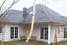 | Крыша | 4-скатная, Скат 30° , Стропильная система деревянная, кровля из керамической черепицы |