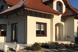 | Крыша | 4-скатная, Скат 38° , Стропильная система деревянная, кровля из керамической черепицы |