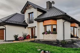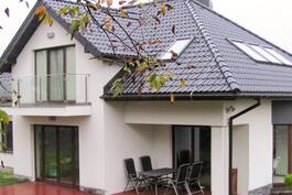 Проект элегантного, современного дома с жилой мансардой и гаражом на две машины. Дневная зона спланирована вокруг центрально расположенного камина, просторный холл соединяется с открытой кухней и гостиной, где стеклянный эркер предоставляет место для большого семейного стола. Напротив входа запланирована зона отдыха с домашним кинотеатром и широким выходом на террасу. Это усиливает впечатление просторности этой зоны. Из столовой есть выход на крытую террасу - проекты домов с таким решением очень популярны. Кабинет и ванная комната расположены рядом с гостиной. Подсобные помещения дома включают котельную с переходом в гараж и кладовую. Лестница из гостиной ведет на мансарду, где расположена приватная зона членов семьи. Три просторные спальни и удобная ванная комната располагают к отдыху. Прачечная с большой сушильной комнатой, расположенная над гаражом, и гардеробная завершают дизайн. Интересный корпус здания разнообразен оригинальным остеклением. Благодаря этому проект дома имеет характер небольшой резиденции.