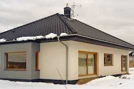 Элегантный проект одноэтажного дома с компактным и простым корпусом, который украшен интересными архитектурными элементами. Главный вход привлекает внимание практичным и привлекательным навесом и клинкерной облицовкой фасада. Многочисленные остекления красиво освещают интерьер и плавно соединяют дом с окружающим садом. Внутренняя планировка дома была разработана очень функционально, с четким разделением зон использования. Представительская гостиная зона - идеальное место для ежедневного отдыха всей семьи и друзей дома. В просторной гостиной есть удобный диван и кресла, которые обеспечат отдых перед камином и домашним кинотеатром. В стеклянном эркере разместился большой семейный стол, который можно свободно разложить для большего количества людей во время праздников и других торжеств. Открытая кухня - идеальное место не только для приготовления, но и для приема пищи благодаря практичной барной стойке. Оптимальное количество рабочих поверхностей является одним из преимуществ кухни, кроме того, ее программу дополняет практичная кладовая с местом для хранения продуктов и кухонных инструментов. Выход на террасу и многочисленные остекления естественно освещают интерьер и оптически увеличивают жилую площадь. В теплые дни на террасе можно устроить летнюю столовую или кофейный уголок, что фактически увеличивает досуговую часть дома, предоставляя семье возможность отдохнуть на свежем воздухе. Из тамбура мы попадаем в котельную с функцией прачечной, а в прихожей есть место для шкафов и встроенного шкафа. В удобную ночную зону можно попасть из отдельного коридора. Здесь спроектированы три просторные спальни и ванная комната с ванной и душем. Все комнаты хорошо освещены, в них также есть место для вместительных стенных шкафов. Этот привлекательный проект дома относится к популярным категориям: проекты небольших домов, проекты современных домов, одноэтажные дома
