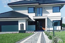Современная и комфортабельная вилла с привлекательным корпусом и интересной отделкой фасада. Жилая зона состоит из просторной и красиво освещенной гостиной с местом для удобных диванов перед камином и телевизором, а также отдельной столовой с широким столом. Большие балконные двери ведут на крытую террасу, которая увеличивает зону отдыха, а в солнечные дни становится летней столовой. Кухня с угловым окном дополнена практичной кладовой. Из тамбура мы попадаем в хозяйственную зону дома - прачечная ведет к большому гаражу с котельной на твердом топливе. Размер гаража позволяет выделить отдельную зону для хранения садового инвентаря или уголок для разнорабочих, при необходимости в нем можно разместить три автомобиля. Отделение части гаража и соединение его с гостиной (проход рядом с камином) дает возможность создать комнату отдыха, например, с бильярдным столом или домашней библиотекой. Удобная лестница ведет на второй этаж, где расположены четыре комфортабельные спальни и общая ванная комната. Спальня родителей была спроектирована с отдельной гардеробной и ванной комнатой. Решение второго этажа как полноценного позволяет свободно расположить и использовать большое остекление для освещения помещений.